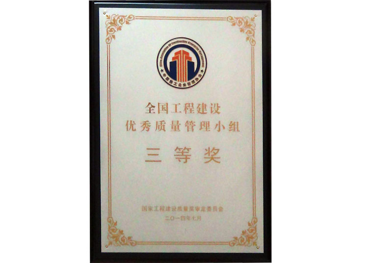全國工程建設(shè)優(yōu)秀質(zhì)量管理小組三等獎